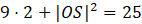 Wysokością trójkąta BDP będzie bok OP (gdzie O to punkt przecięcia się przekątnych podstawy). Szukana wysokość OP będzie wysokością trójkąta OCS opuszczoną na przeciwprostokątną, czyli krawędź boczną (bok CS). Przyprostokątnymi tego trójkąta będzie połowa przekątnej podstawy (czyli bok CO) oraz wysokość (czyli OS). Bok CS ma długość 5, zaś CO ma długość