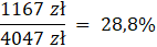 Oblicz, jaki procent średniej pensji został odprowadzony na podatki i ubezpieczenia, wiedząc że w maju 2016 r. średnie wynagrodzenie brutto w Polsce wynosiło około 4047 zł, a netto – około 2880 zł.