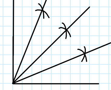 Narysuj kąt prosty, podziel go na cztery równe części.