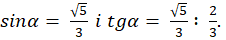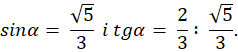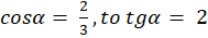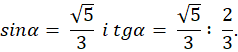 W pierwszej kolejności zauważ, że długość przeciwprostokątne wynosi 3, a jednej z przyprostokątnych 2 (skorzystaj z cosinusa). Następnie z twierdzenia Pitagorasa, oblicz długość drugiej przyprostokątnej. W ostatni kroku wyznacz wartość sinusa i tangensa.