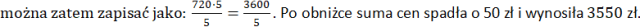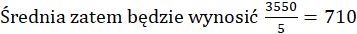 Karol przygotowuje się do egzaminu na patent żeglarski. W tym celu znalazł pięć kursów, których średnia cena wynosiła 720 zł. Po jakimś czasie jedna z tych ofert staniała o 50 zł. Ile teraz wynosi średnia rozważanych ofert?