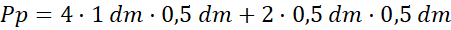 Wiedząc, że wysokość wynosi 1 dm, a krawędź podstawy jest dwukrotnie krótsza oblicz pole powierzchni.
