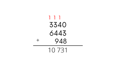 Zapisujemy wyniki dodawania kolumnami. Wynik dodawania jedności pod jednościami, dziesiątki pod dziesiątkami i tak wszystkie liczby. Gdy pojawia się suma większa od 9, to liczbę dziesiątek przepisujemy nad nasze liczby i dodajemy w kolejnym dodawaniu.