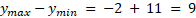 Spośród podanych wybierz liczbę określającą różnica między największą a najmniejszą wartością funkcji kwadratowej przyjmowaną w przedziale