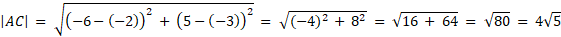 Zacznij od obliczenia długości boków trójkąta. Skorzystaj ze wzoru