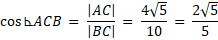 to końce odcinka. Kolejno sprawdź, czy obliczone długości boków spełniają twierdzenie Pitagorasa. Zastosuj twierdzenie odwrotne do twierdzenia Pitagorasa i pokaż, że trójkąt jest prostokątny. Następnie oblicz wartości funkcji trygonometrycznych dla kątów ACB i ABC.
