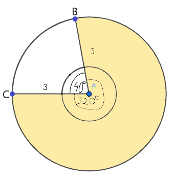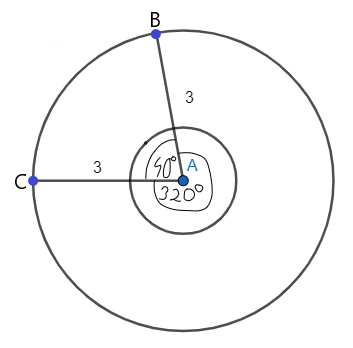 W kole o promieniu 3 cm należy oznaczyć odcinek, którego pole jest równe polu pierścienia powstałego między okręgami o promieniach 1 cm i 3 cm.