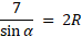 Zacznij od obliczenia cosinusa kąta alfa z twierdzenia cosinusów. Kolejno skorzystaj z jedynki trygonometrycznej, aby otrzymać wartość sinusa tego kąta. Na koniec skorzystaj z twierdzenia sinusów, aby wyliczyć wartość promienia R.