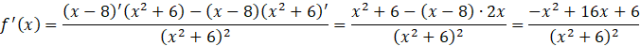 Skorzystaj ze wzoru na pochodną ilorazu funkcji i przedstaw ją w najprostszej postaci.