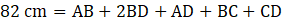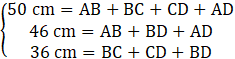 Skonstruuj układ równań, gdzie kolejne równości to obwód czworoboku, obwód trójkąta ABD i obwód trójkąta BCD: