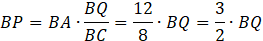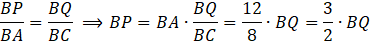Wstawiając to wyrażenie na BP do sumy odcinków BP i BQ: