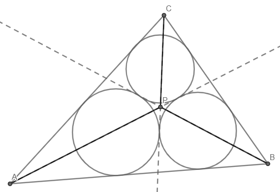 Skorzystaj z informacji, iż na okręgu można opisać czworokąt, jeśli sumy przeciwległych boków czworokąta są równe. Załóż najpierw, iż w ABPC i BCPA można wpisać okręgi, czyli