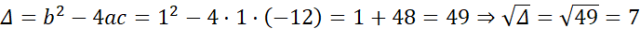 a2 + a – 12 = 0