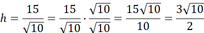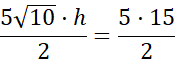 Gdy trójkąt jest przyprostokątny, to jego przyprostokątne są jednocześnie jego wysokościami, więc wysokości te mają długości 5 i 15. Oblicz brakującą wysokość korzystając ze wzoru na pole trójkąta