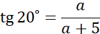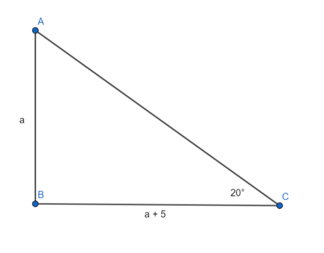 W tym zadaniu oblicz długości przyprostokątnych trójkąta prostokątnego wiedząc, że w tym trójkącie o kącie ostrym 20° jedna z przyprostokątnych jest o 5 cm dłuższa od drugiej.