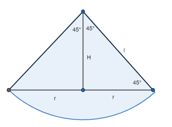 Zauważ, że powstałe trójkąty są prostokątne równoramienne, zatem H = r.