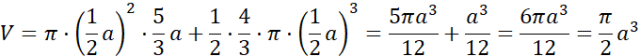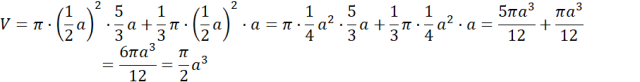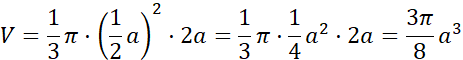 Bryła II: jest to stożek o wysokości 2a i promieniu podstawy 0,5a. Objętość stożka wyznacza się ze wzoru