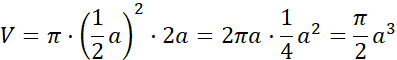 Bryła III: jest to walec o wysokości 2a i promieniu podstawy 0,5a. Objętość walca wyznacza się ze wzoru