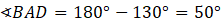 Zacznij od obliczenia miary kąta BAD, następnie oblicz miarę kąta alfa.