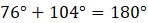 Zauważ, że trójkąty przystające mają kąty równej miary. Musiałby mieć zatem jeden kąt o mierze 104 stopnie, a drugi o mierze 76 stopni. Wtedy trzeci kąt musiałby mieć 0 stopni, co jest niemożliwe.