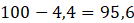 Liczba 0,1x jest 0 4,4 mniejsza od 100.