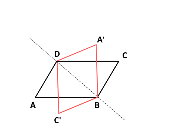 Narysuj dwa równoległoboki, które są symetryczne względem przekątnej.