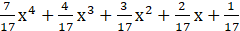 Zapisz wielomian, którego najwyższa potęga będzie równa 4 oraz suma współczynników wynosi 1.