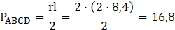 Na okręgu o promieniu 2 opisano czworokąt ABCD. Wiadomo, że |AB| = 5 oraz |CD| = 3,4. Wyznacz powierzchnię niebieskiego obszaru.