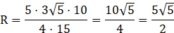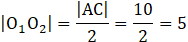 Musimy obliczyć promień okręgu opisanego na trójkącie abd oraz promień okręgu opisanego na trójkącie ABC gdy już to mamy to zauważamy że Odległość środków tych dwóch promieni to wysokość trójkąta. Korzystamy z twierdzenia Pitagorasa i otrzymujemy odległość