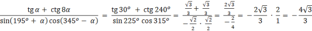W tym zadaniu musisz wyznaczyć wartość podanego wyrażenia, podstawiając w miejsce α odpowiednią wartość kąta i korzystając z odpowiednich wzorów.