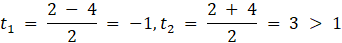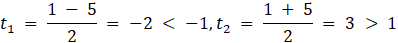 Dla równania D. rozwiązania t1 i t2 nie spełniają założenia