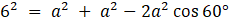 Z twierdzenia cosinusów wyznacz długość krawędzi podstawy: