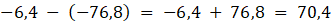 Odległość między punktami po ich zatrzymaniu się wynosi 70,4.