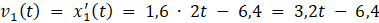 Prędkość chwilową punktu pierwszego opisuje wzór: