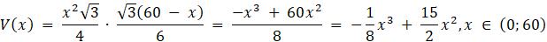 Niech objętość pudelka będzie określona za pomocą funkcji zmiennej x: