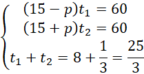 „Prędkość własna motorówki wynosi 15 km/h. Motorówka wyruszyła z przystani rzecznej A i po przepłynięciu do przystani B od razu zawróciła, kierując się do przystani A. Trasę od A do B i z powrotem, o łącznej długości 120 km, pokonała w czasie 8 godzin i 20 minut”: