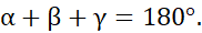 Przyjrzyj się uważnie rysunkowi i zauważ, że narysowane proste przecinają się, tworzą trójkąt ABC, a zaznaczone kąty są kątami wierzchołkowymi z kątami wewnętrznymi trójkąta. Suma kątów w trójkącie wynosi 180°.