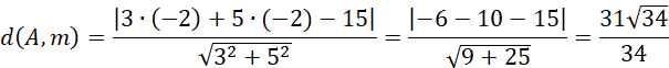 Skorzystaj ze wzoru na odległość punktu od prostej: