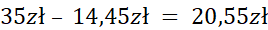 Najpierw od kwoty, którą miała Ewa na początku, odejmij cenę piórnika. Wynik to będzie kwota, która została Ewie. Z tej kwoty wydała trochę pieniędzy na lody i zostało jej 18 zł i 15 gr. Musisz od kwoty, którą miała Ewa przed kupnem lodów, odjąć kwotę, którą miała Ewa po kupnie lodów.