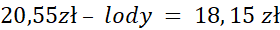 Na podstawie wiedzy o wydatkach Eli i tym ile zostało jej reszty, oblicz ile kosztowały ją lody.