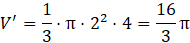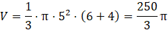 Oblicz objętość większego stożka: