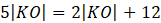 Zauważ, że trójkąt 𝐾𝐿𝑀 jest podobny do trójkąta 𝐾𝑂𝑃 z cechy kkk. Oblicz długość odcinka 𝐾𝑂: