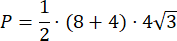 W tym zadaniu musisz obliczyć pole i obwód trapezu, którego krótsza przekątna dzieli go na trójkąt prostokątny i trójkąt równoboczny. Weź pod uwagę, iż wysokość tego trapezu wynosi