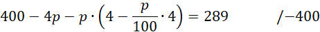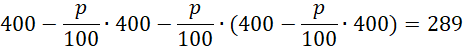 W tym zadaniu musisz obliczyć p, wiedząc że początkowa powierzchnia stawu to 400 m² i przez dwa kolejne lata, na skutek suszy, powierzchnia stawu się zmniejszała - w każdym roku o p%, a aktualna powierzchnia stawu to 289 m².