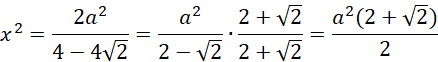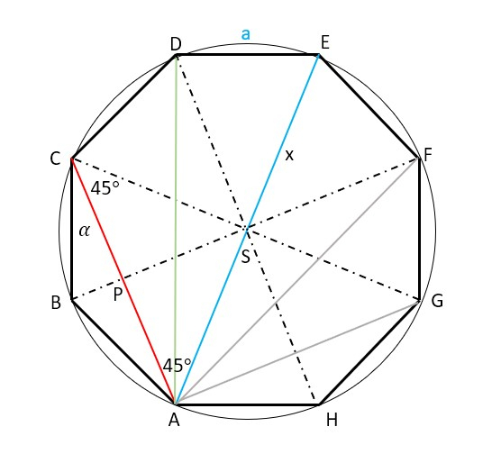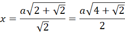 Bok ośmiokąta foremnego oznacz jako a, a ramię utworzonych trójkątów równoramiennych jako x.