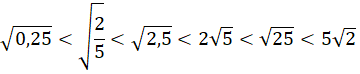 Zapisz każdą z liczb w postaci liczby całkowitej lub ułamka dziesiętnego pod pierwiastkiem. W ten sposób możesz porównać liczby pod pierwiastkami, a im większa liczba pierwiastkowana, tym większy pierwiastek. Podane pierwiastki mają więc taką samą kolejność rosnącą, jak liczby pod pierwiastkami.