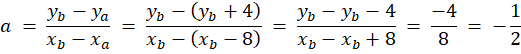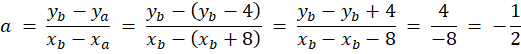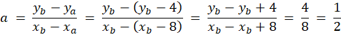 Wyznacz zakres wartości współczynnika kierunkowego prostej AB, jeżeli pierwsze współrzędne punktów A i B różnią się o 8, a drugie - o 4.