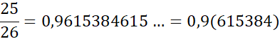 W tym zadaniu w okresie znajduje się 6 liczb, wiedząc, że 9 znajduje się na 1. miejscu to do dyspozycji mamy już tylko 213 miejsc, zatem dzielimy ta liczbę przez ilość cyfr jaka znajduję się w okresie, otrzymując, ile pełnych okresów znajduje się w rozwinięciu dziesiętnym oraz która liczba w okresie znajduje się na 214. miejscu. Wyznaczono, że na trzecia cyfra to cyfra, która będzie znajdować się na 214. miejscu, zatem jest to cyfra 5.