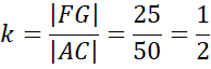Zauważ, że skoro proste FG i ED są równoległe, to kąty BGF i BCA oraz BFG i BAC mają równe miary, więc trójkąty BFG i ABC są podobne z cechy KKK. Oznacza to, że skalę ich podobieństwa możesz obliczyć z ilorazu długości boków w obu trójkątach leżących przy tych samych miarach kątów, czyi w tym przypadku długości ich przeciwprostokątnych.