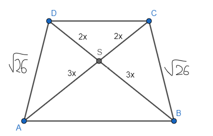 Stwórz rysunek pomocniczy. Z twierdzenia Pitagorasa wyznacz długość boku x. Następnie oblicz pola trójkątów ASB, BSC, CSD i DSA, a następnie pole trapezu ABCD.